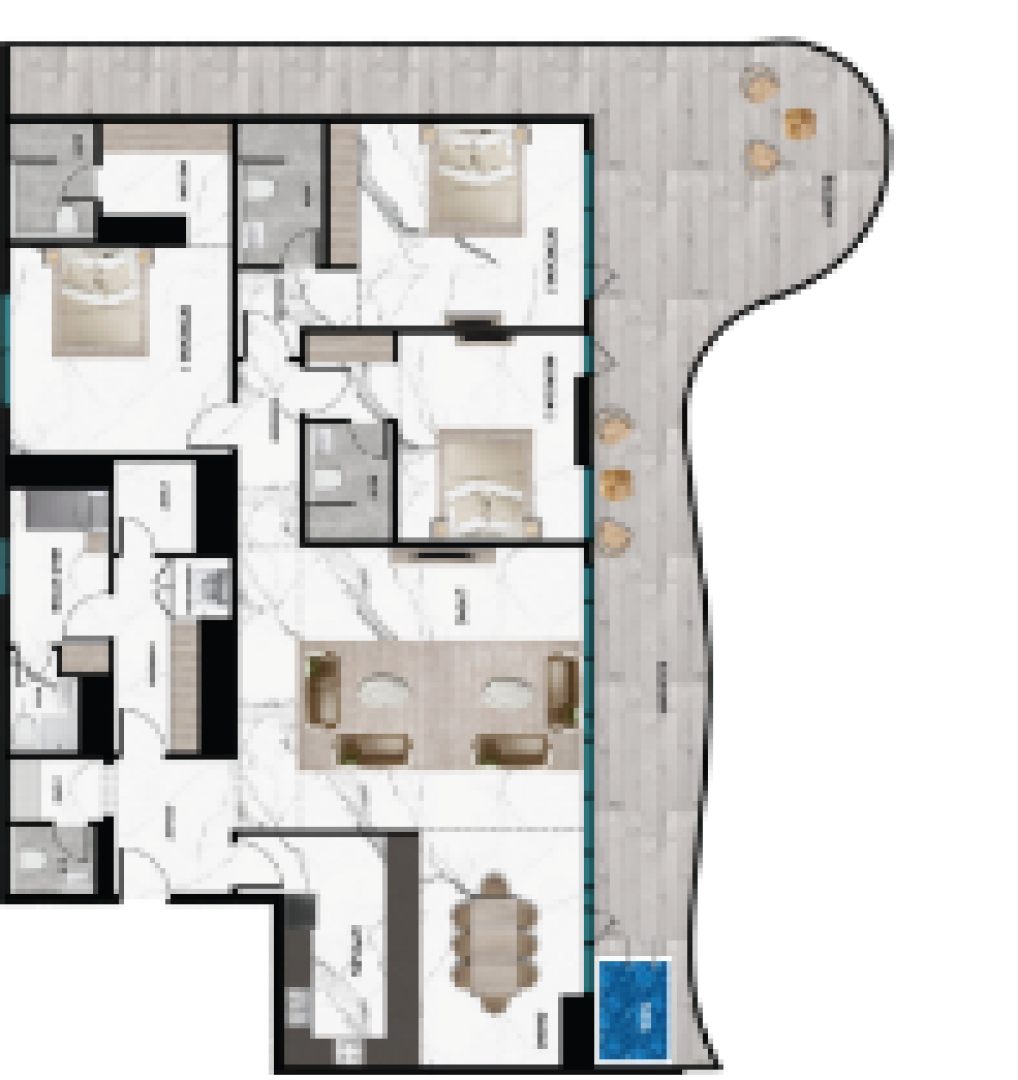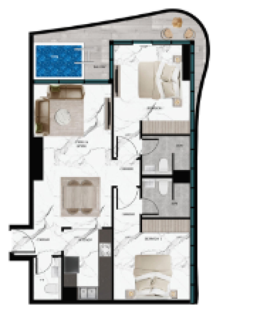 All units feature high-quality finishes, excellent natural lighting, and modern layouts. Many apartments include private pools and spacious balconies overlooking greenery or skyline views.
