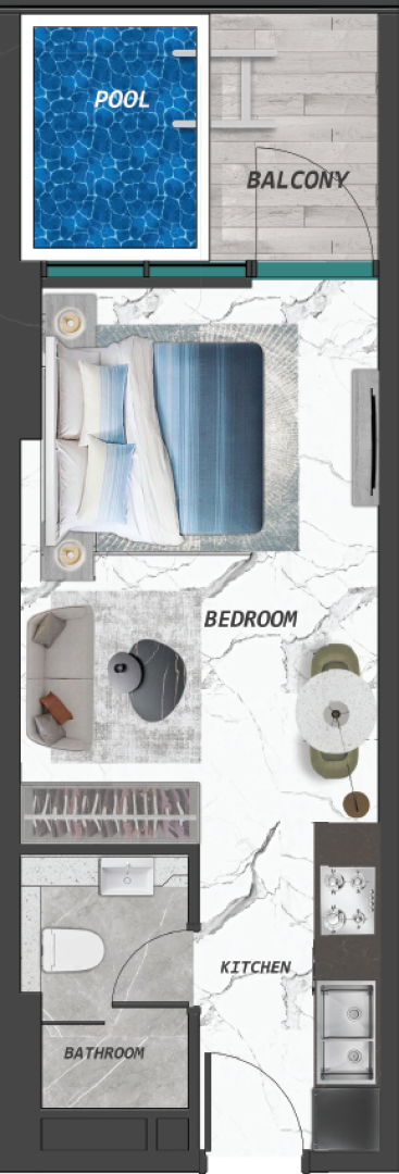 - Private outdoor spaces with panoramic views of the lake and skyline