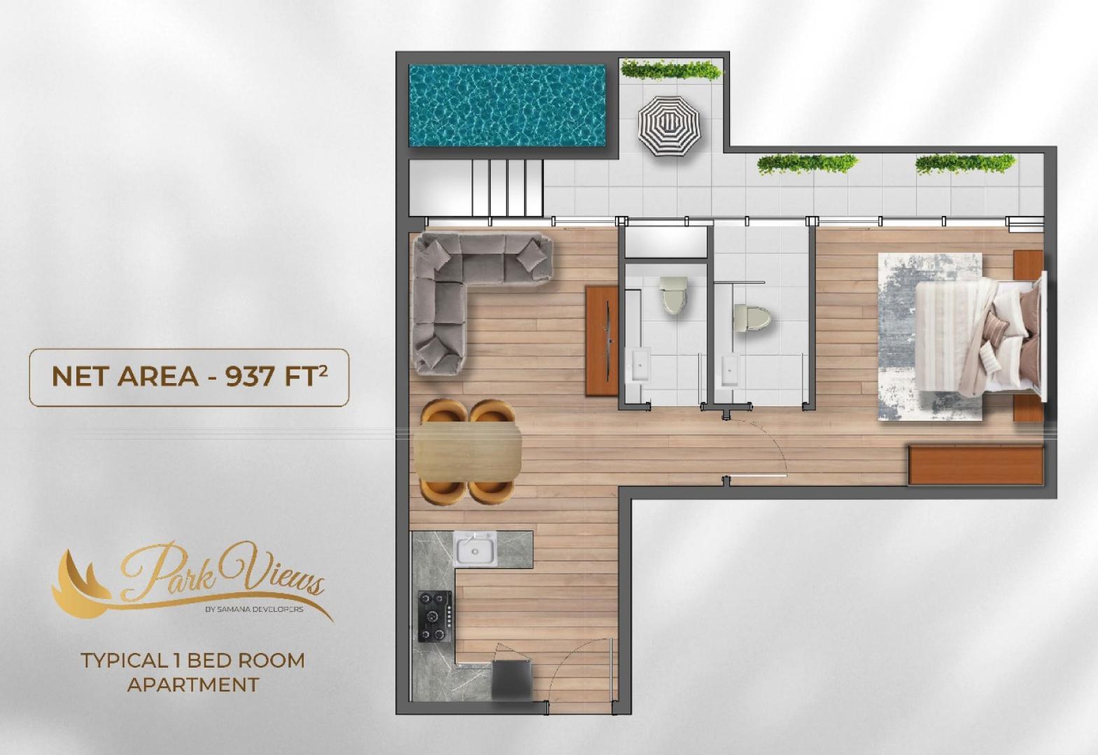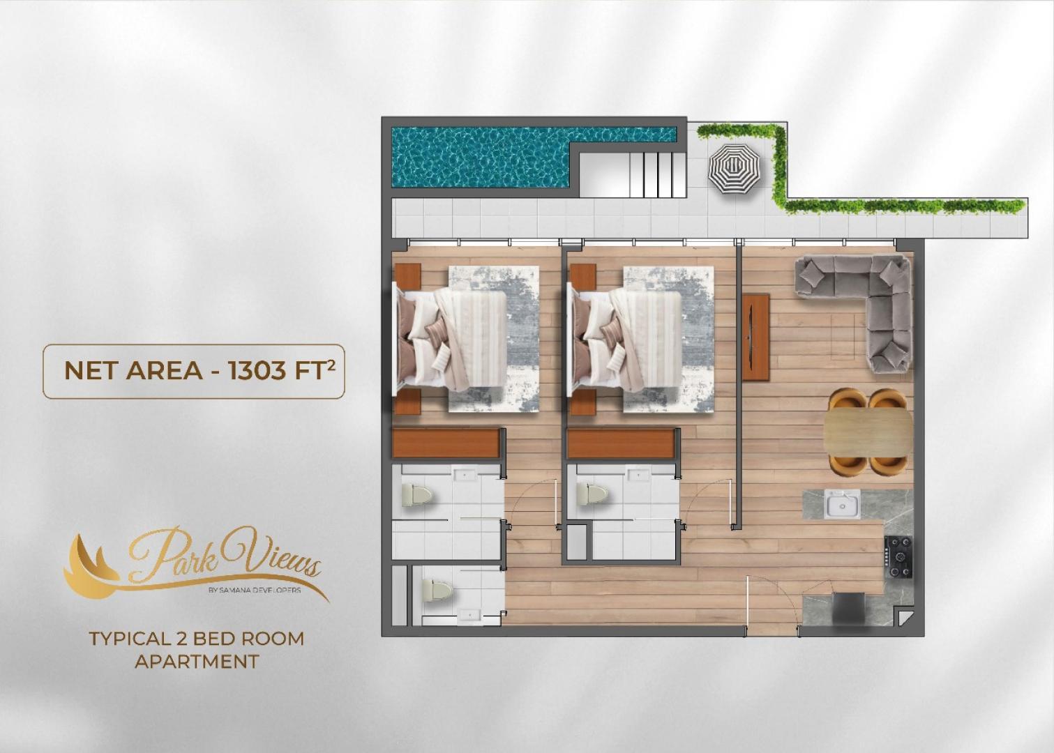 Residents of SAMANA Waves enjoy a range of lifestyle amenities, including swimming pools, landscaped areas, a fully equipped fitness center, and leisure spaces designed for rest and recreation, ensuring a balanced and enjoyable living experience.